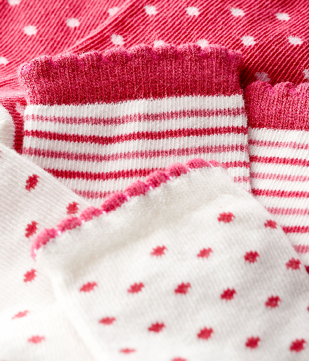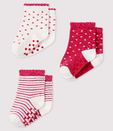 Три пари милих шкарпеток з підошвою, що не ковзає. Довжина ступні: 15/18 = 7,4-8,3 см; 19/22 = 9,7-10,6 см; 23/26 = 18,8-14,6 см. Склад: 76% бавовна, 22% поліамід, 2% еластан