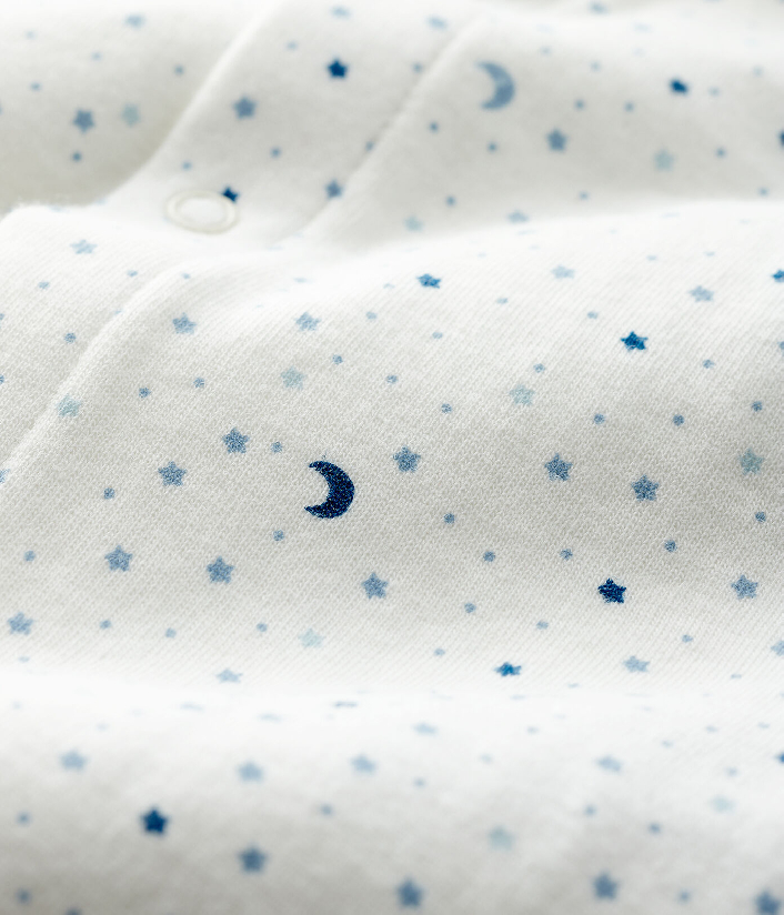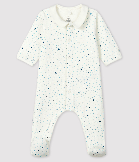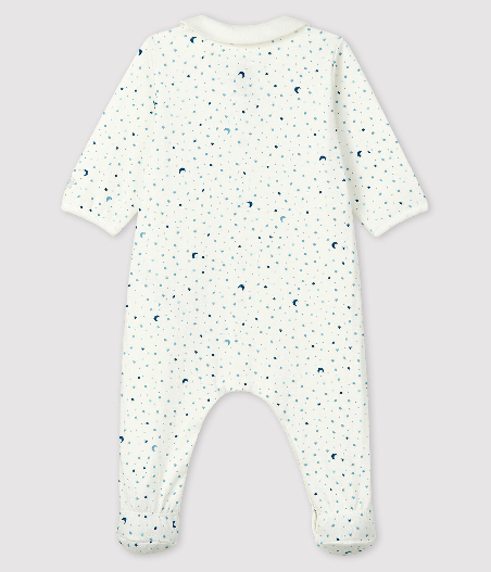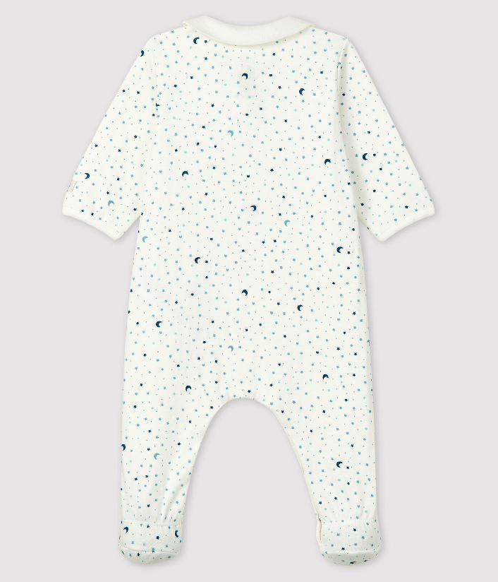 Пижама с принтом ночного неба и воротником. Изделие сшито из органического хлопка. Сертифицированный материал Oeko-Tex Standart 100 гарантирует качество. Застежки на кнопочки для удобного переодевания. Состав: 100% хлопок