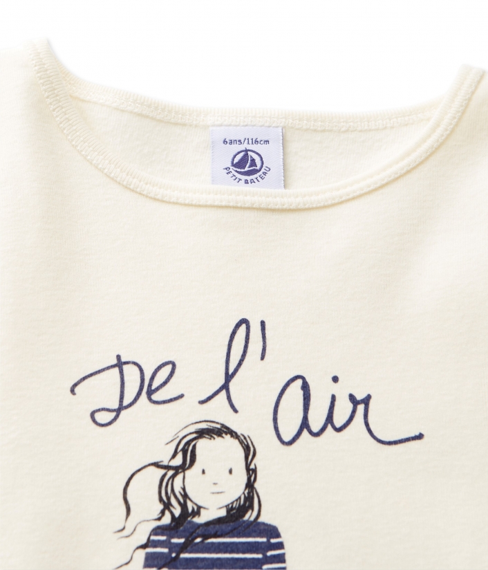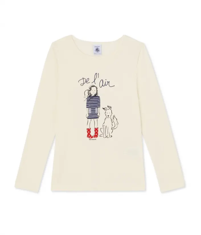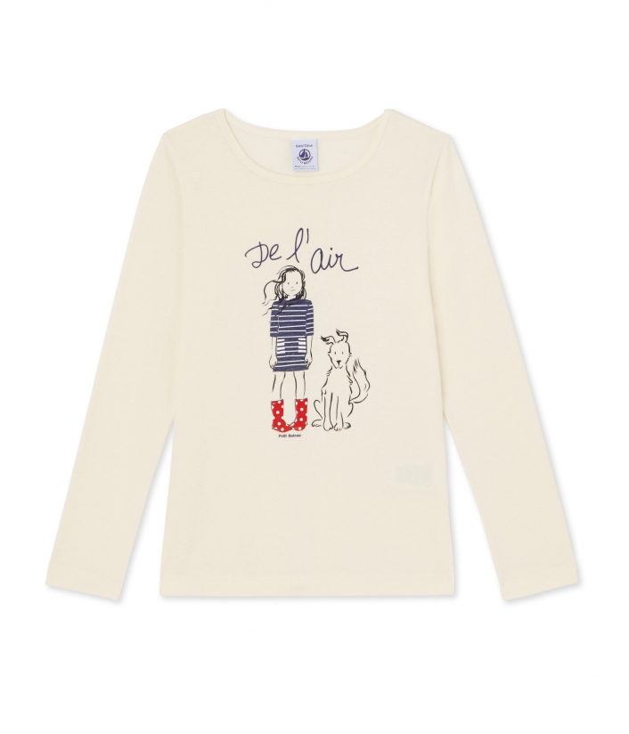 Футболка с длинными рукавами и круглым вырезом для девочки, украшена крупным рисунком на груди. Материал: 100% хлопок.
