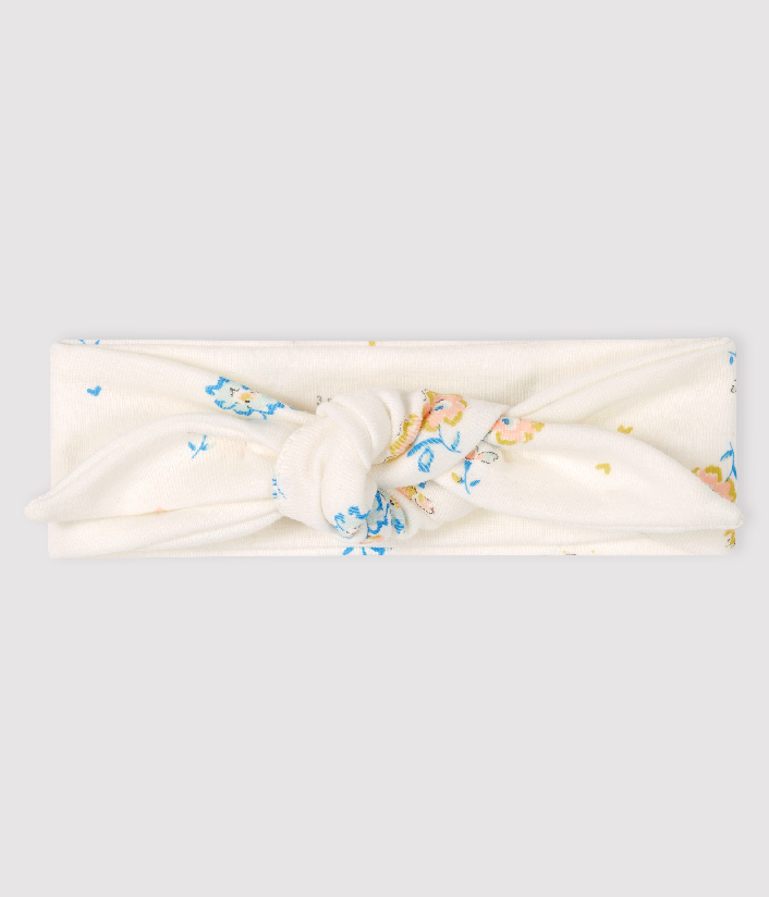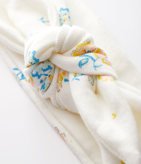 Еластична пов'язка для волосся прикрашена квітковим принтом. Склад: 100% бавовна