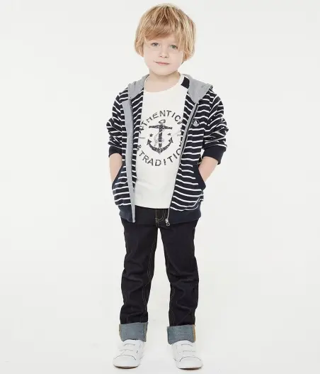 Класичні темні джинси з п'ятьма кишенями для хлопчика. Матеріал: 98% бавовна, 2% еластан.