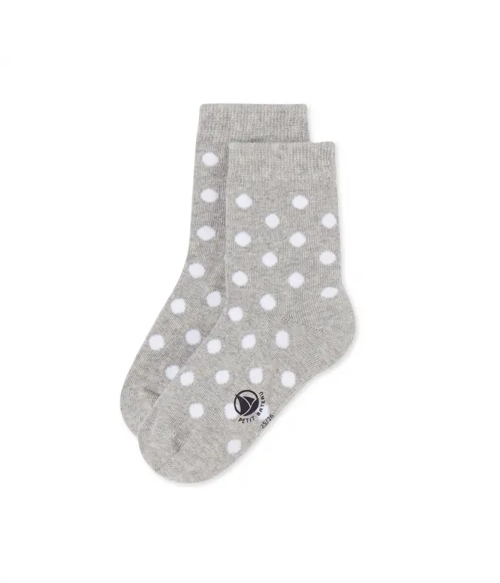 Дитячі шкарпетки, виготовлені з бавовняної тканини "джерсі" у горошок. 100% якість від Petit Bateau. Матеріал: 76% бавовна, 13% поліамід, 9% поліпропілен, 2% еластан.