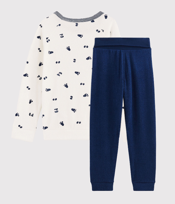 Футболка с принтом стопы мишки и инициалами Petit Bateau. Брюки однотонные с эластичным поясом. Сертифицированный материал Oeko-Tex Standart 100 гарантирует качество. Состав: 42% хлопок, 42% модал, 16% полиамид