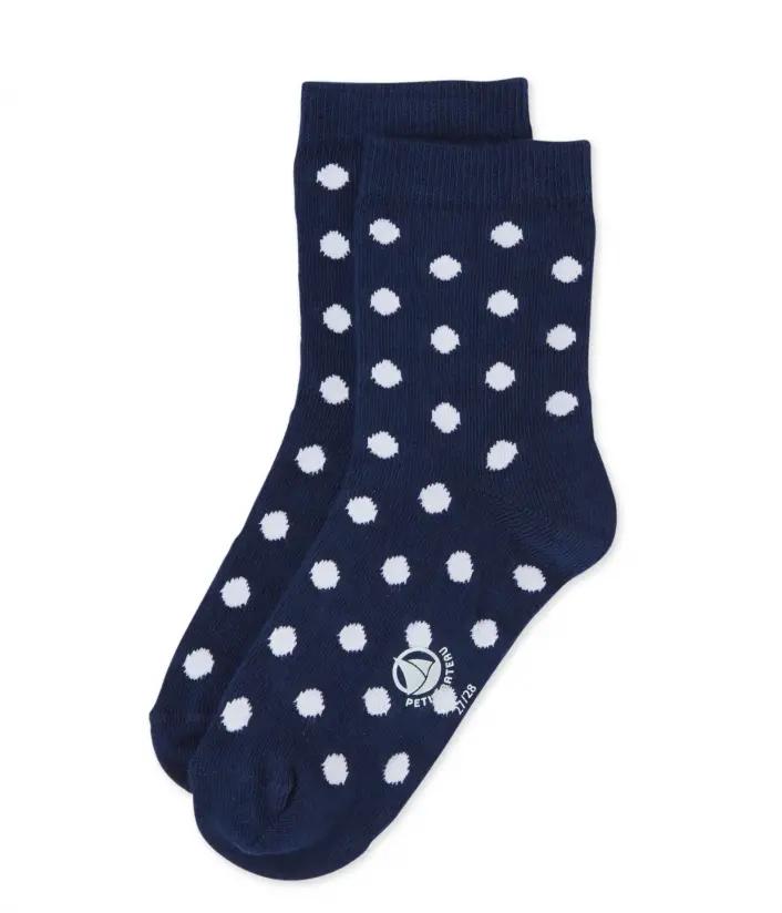 Дитячі шкарпетки, виготовлені з бавовняної тканини "джерсі" у горошок. 100% якість від Petit Bateau. Матеріал: 76% бавовна, 13% поліамід, 9% поліпропілен, 2% еластан.