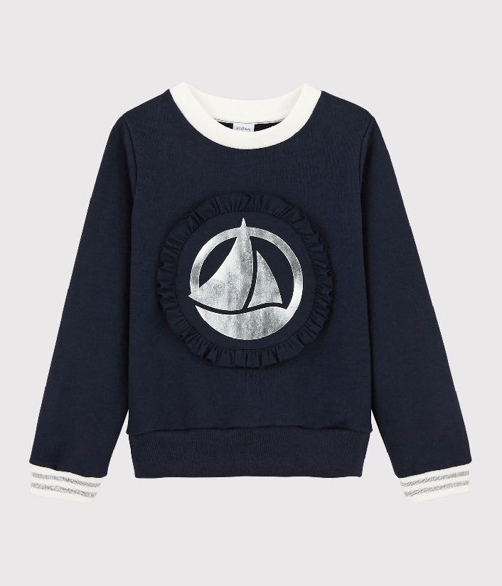 Світшот з великим принтом логотипу Petit Bateau у формі квіточки. Склад: 100% бавовна / 93% бавовна, 5% поліестер, 2% металізована фібра