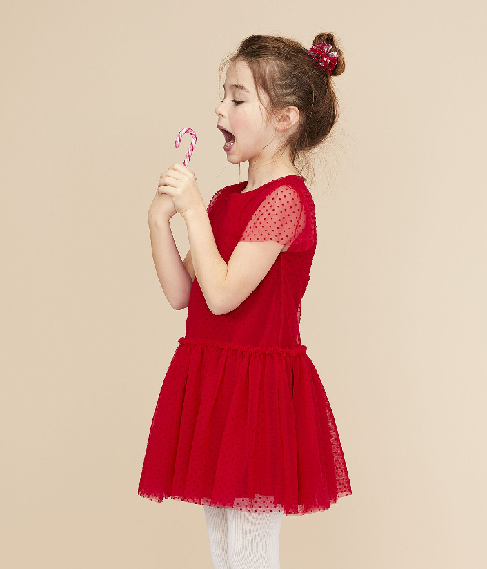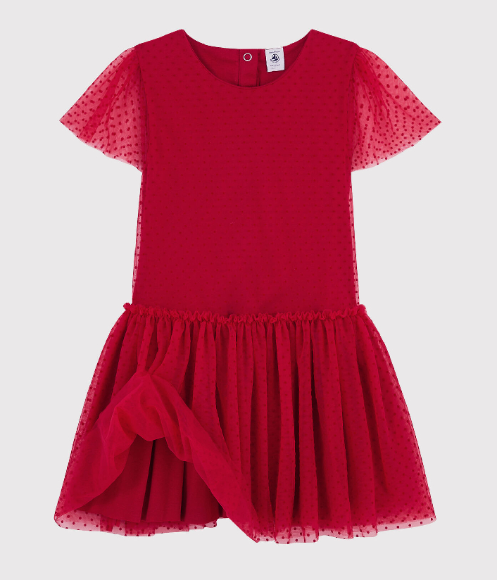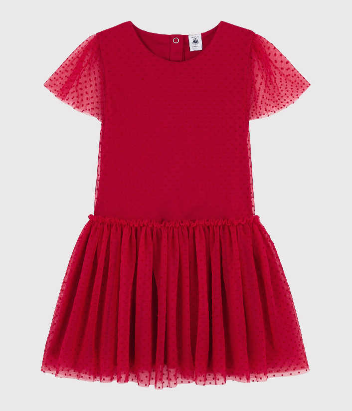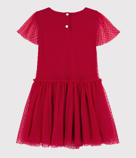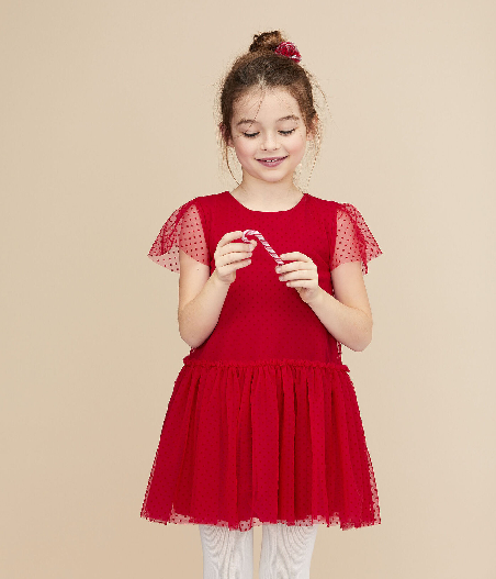 Платье с короткими рукавами для девочки. Застежка на кнопочки сзади. Рукава декорированы фатином. Идеальный выбор для вечеринки. Состав: 100% полиамид / 100% хлопок