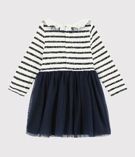 Платье с белым воротником и пышной юбкой из фатина. Состав 76% хлопок, 20% вискоза, 2% полиамид, 2% полиэстер / 100% полиамид / 100% хлопок