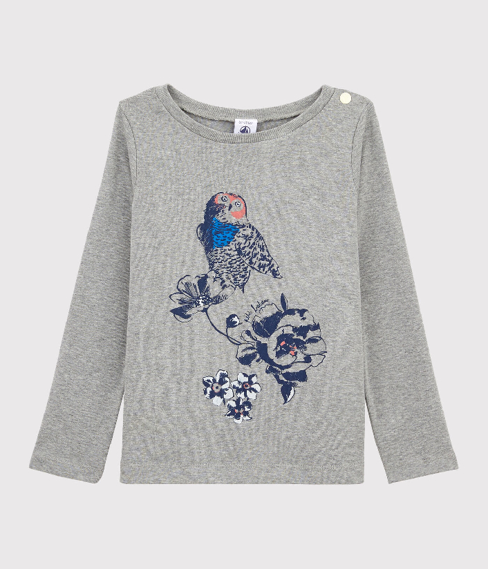 Футболка для дівчинки з шовкографічним принтом спереду та кнопочка на плечі.Склад: 100% бавовна