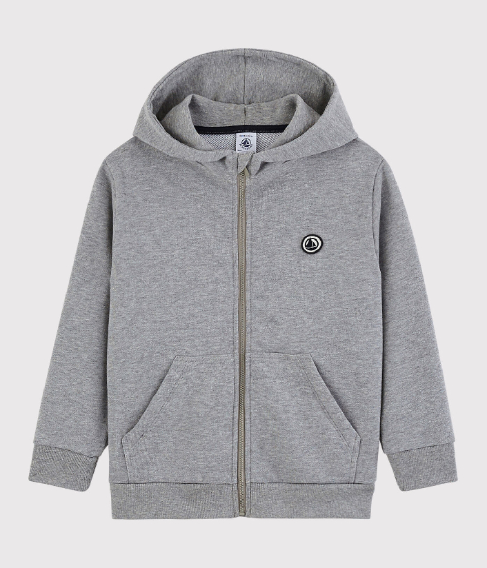 Толстовка с капюшоном имеет застежку-молнию. Карман-кенгуру. Нашивка логотипа бренда Petit Bateau украшает изделие. Состав: 100% хлопок