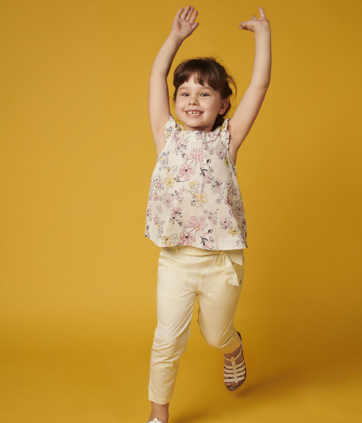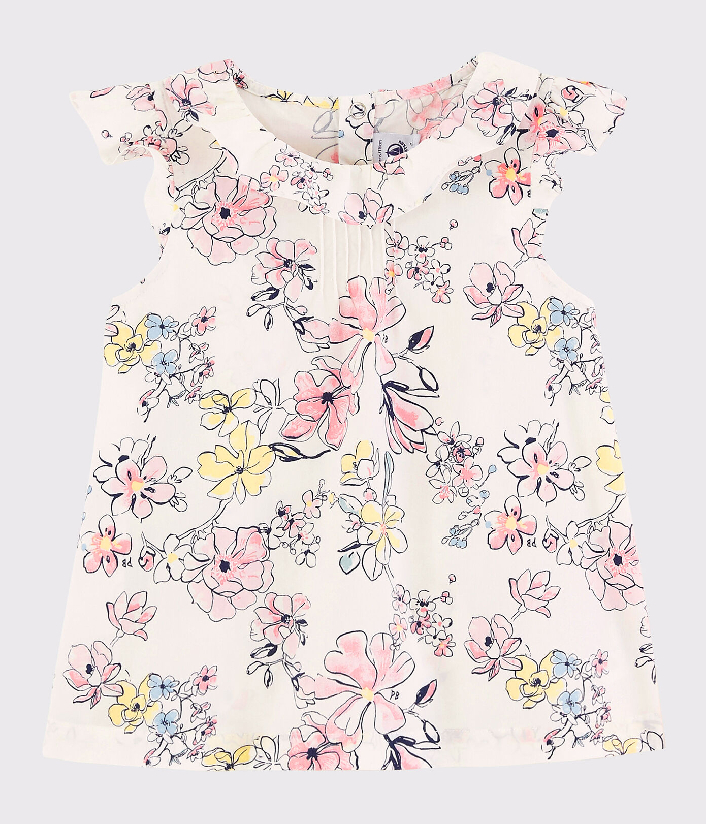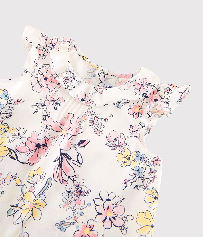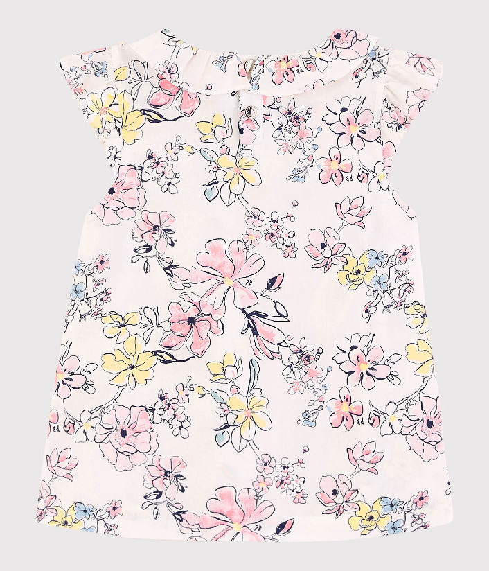 Блуза для особых событий украшена цветочным принтом. Застежка на кнопочку сзади. Состав: 100% хлопок