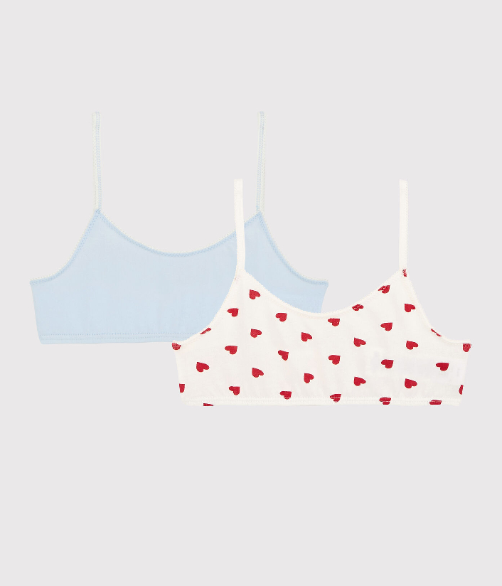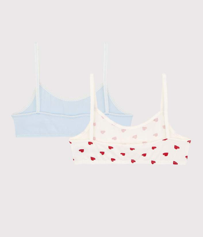 Набір з двома бралеттами для дівчинки. Трикотажний бюстгальтер без кісточок на бретелях надзвичайно зручний. Бавовняна тканина Petit Bateau відмічена етикеткою OEKO-TEX®. Склад: 93% бавовна, 7% еластан