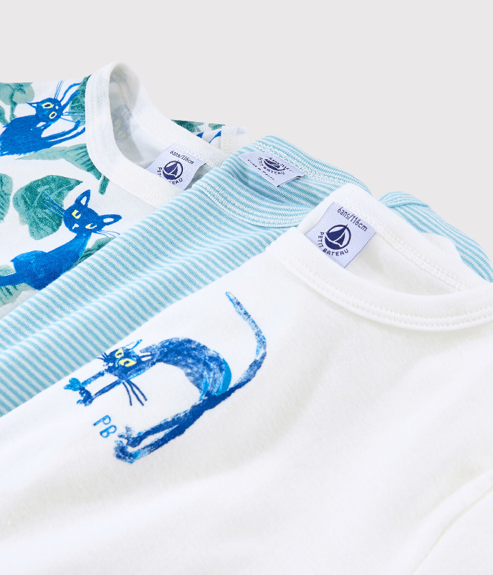 Різнокольорові футболки з короткими рукавами прикрашені різними принтами. Бавовняна тканина Petit Bateau відмічена етикеткою OEKO-TEX®. Склад: 100% бавовна
