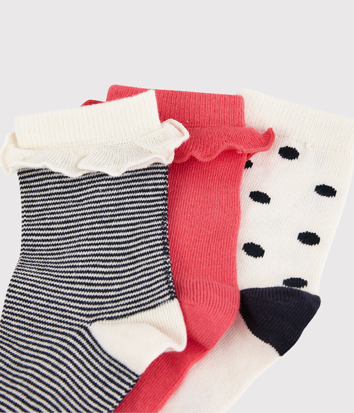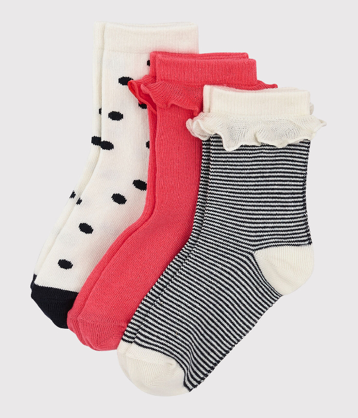 Три пари різнокольорових шкарпеток. Розміри: 23/26 = 14,6-16,1 см / 27/30 = 17,2-18 см / 31/34 = 19,6-21,3 см / 35/38 = 22,8-23,8 см. Склад: 81% бавовна, 18% поліамід, 1% еластан / 75% бавовна, 24% поліамід, 1% еластан