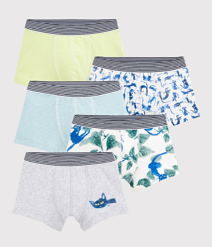 Трусы-боксеры украшены различными стильными и яркими принтами. Они сшиты из хлопчатобумажной ткани Petit Bateau, которая отмечена этикеткой OEKO-TEX®. Состав: 100% хлопок