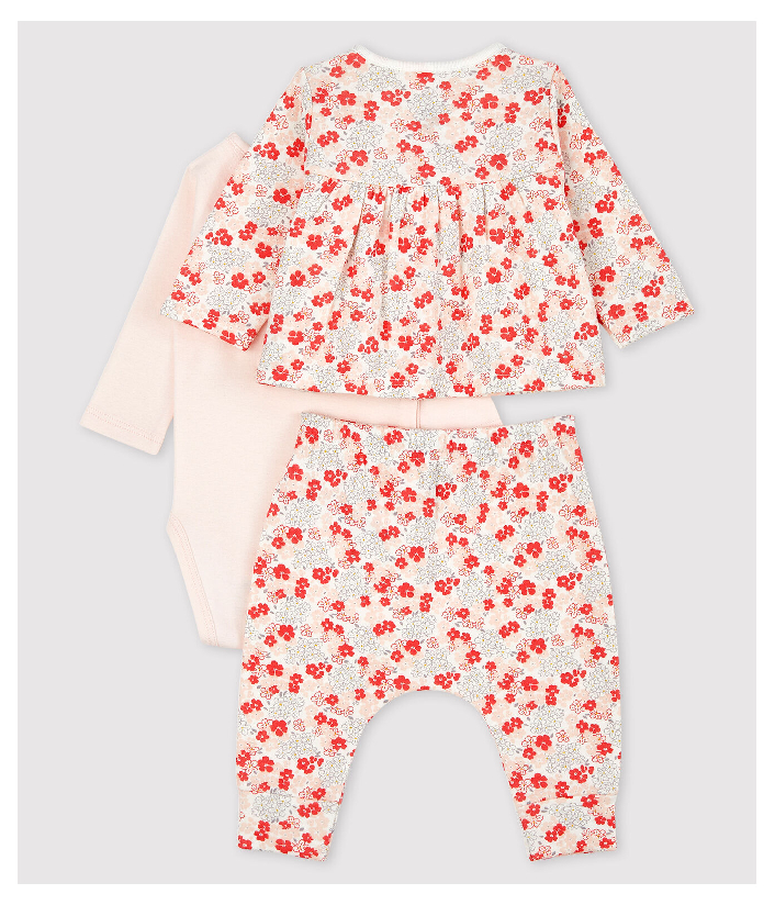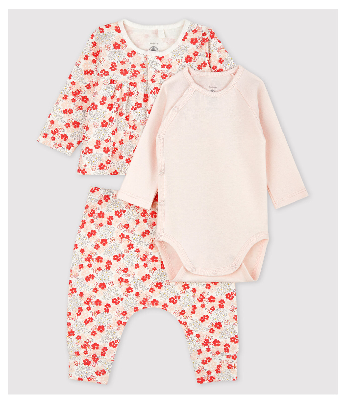 Кардиган з квітковим принтом. Боді з застібкою на кнопочки. Легінси мають еластичний пояс, тому дитині буде в них комфортно. Органічна бавовняна тканина Petit Bateau відмічена етикеткою OEKO-TEX®. Склад: 100% бавовна