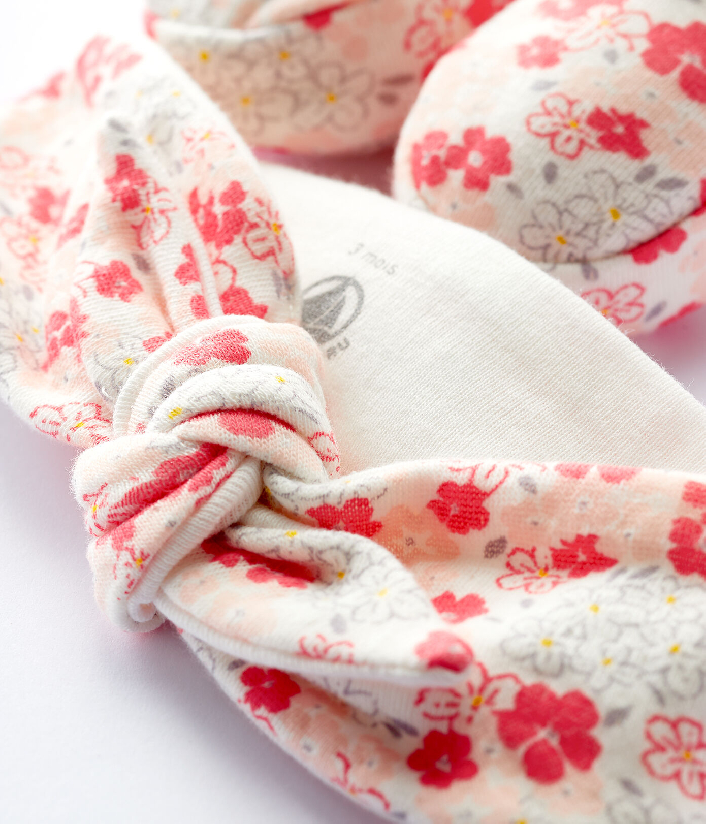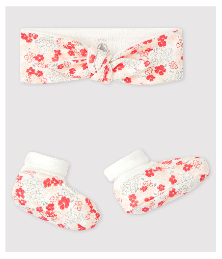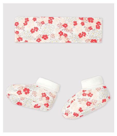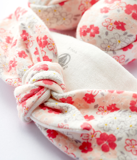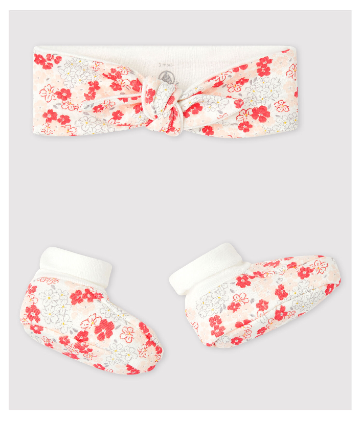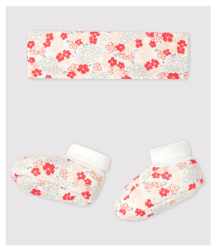 Еластична пов'язка для волосся та пінетки прикрашені квітковим принтом. Склад: 100% бавовна