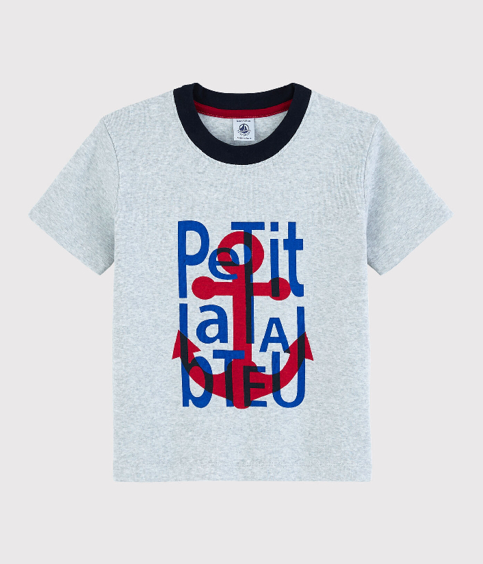 Футболка з принтом якоря та назвою бренду Petit Bateau. Склад: 100% бавовна