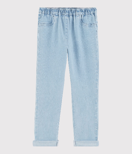 Сині приталені джинси для дівчинки, з підкатаними штанинами та кишенями. Джинсовий одяг надзвичайно зручний та комфортний. Маст-хев в гардеробі дитини. Чудовий вибір для носіння влітку. Склад: 98% бавовна, 2% еластан
