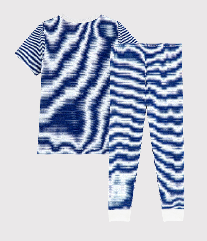 Футболка с короткими рукавами и брюки украшены полоской. Пижама из хлопчатобумажной ткани Petit Bateau отмечена этикеткой OEKO-TEX®.Склад: 100% хлопок
