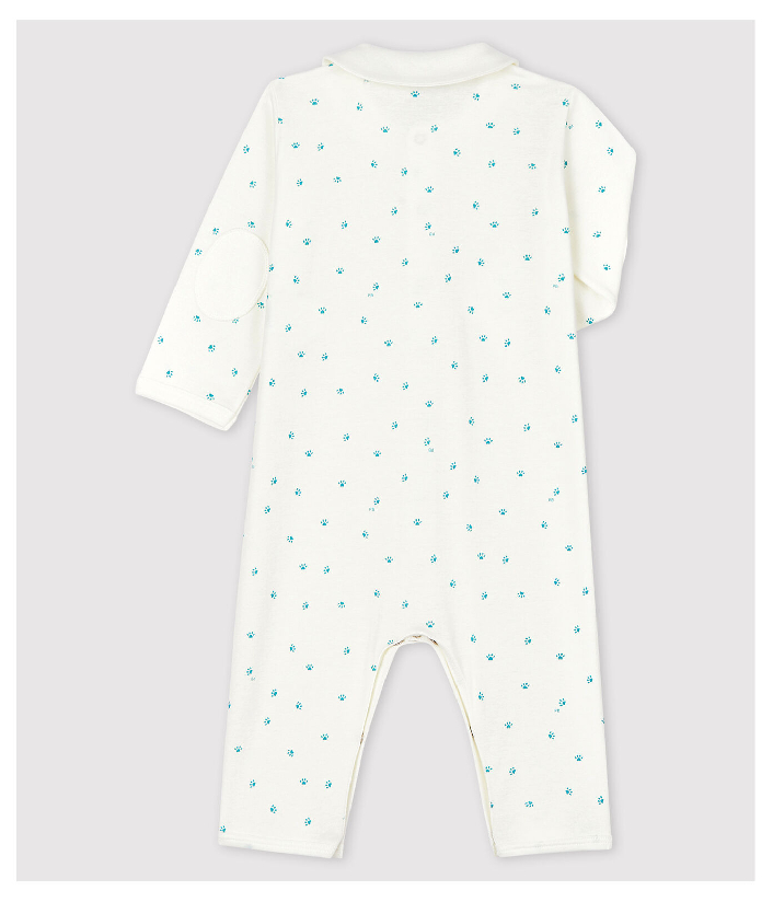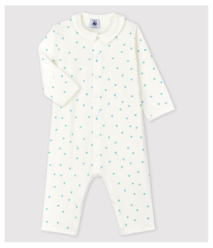 Піжама з відкритими ніжками та коміром. Нашивки на ліктях. Піжама прослужить довше, адже діти так швидко ростуть. Застібка на кнопочки. Натуральна бавовняна тканина Petit Bateau відмічена етикеткою OEKO-TEX®. Склад: 100% бавовна