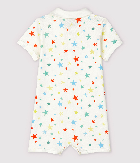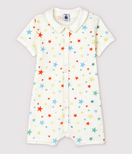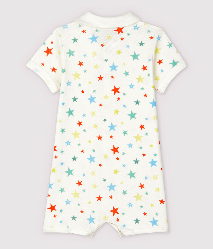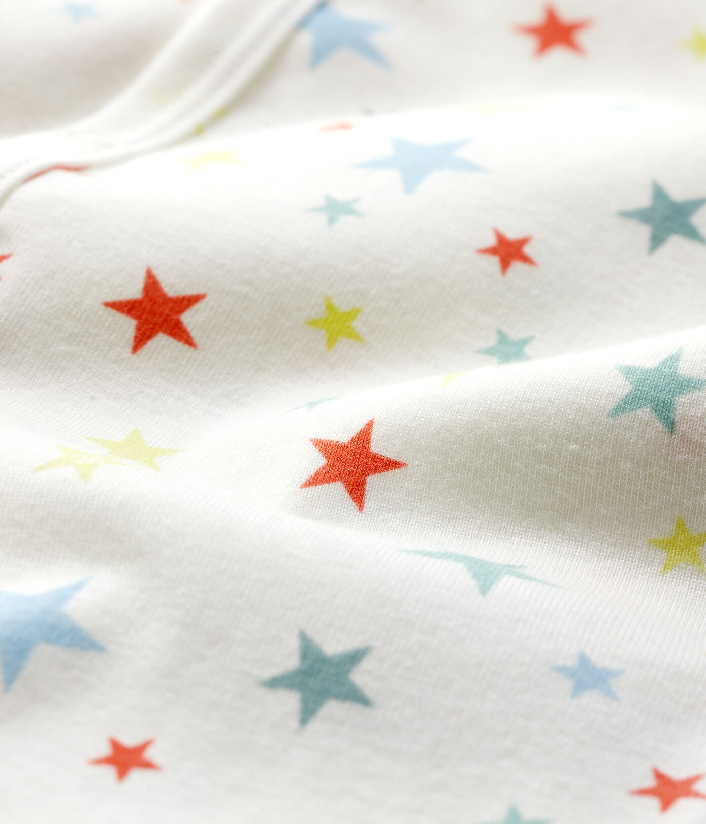 Піжама прикрашена принтом зірочок. Застібка на кнопочки. Органічна бавовняна тканина Petit Bateau відмічена етикеткою OEKO-TEX®. Склад: 100% бавовна