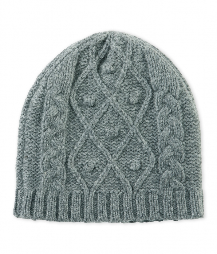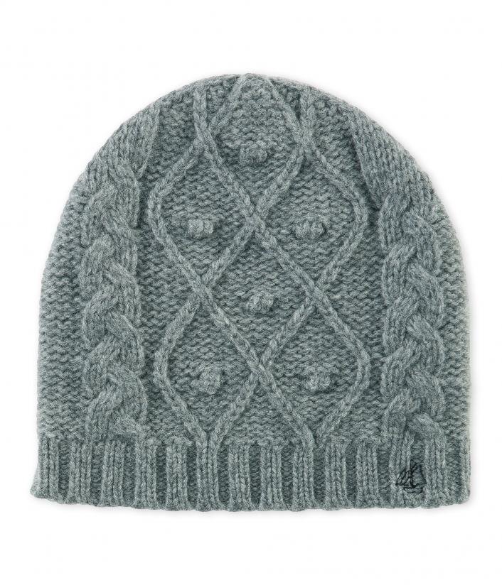 Дитяча в'язана шапка з вишуканим візерунком, створена з теплої та м'якої вовни. Матеріал: 62% вовна, 38% поліамід.