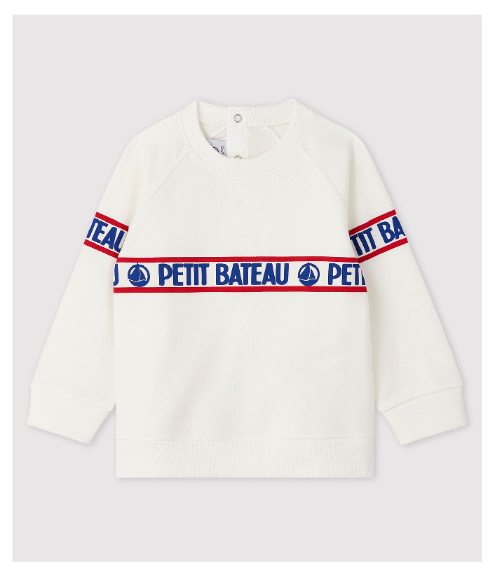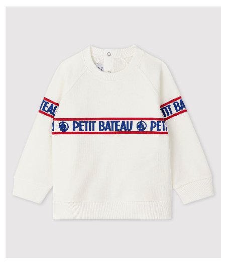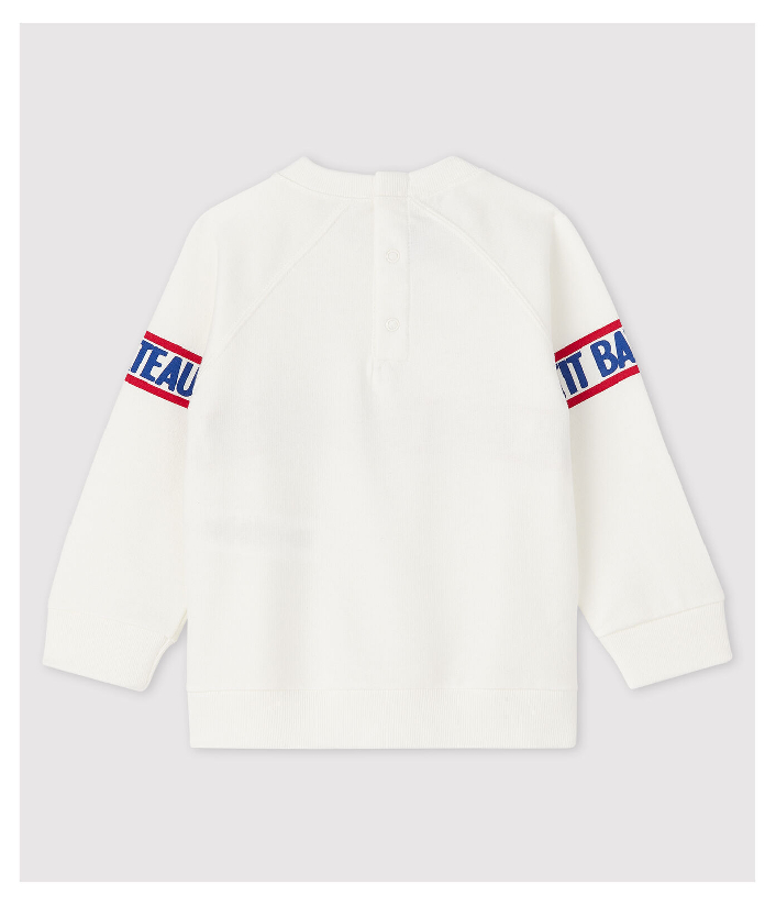 Свитшот белого цвета украшен логотипом бренда Petit Bateau. Застежка на кнопочки. Состав: 100% хлопок