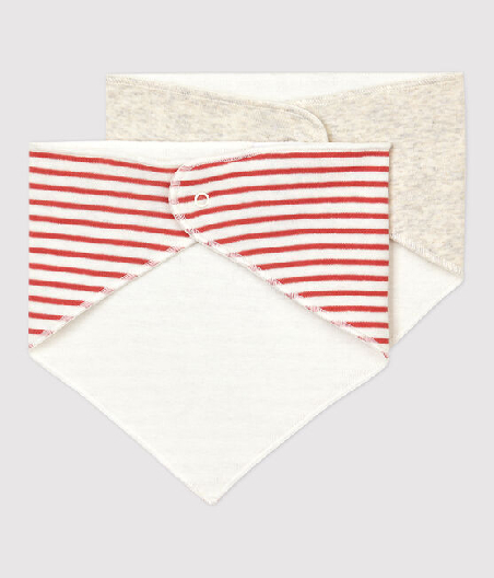 У комплекті двоє нагрудників для немовлят. Застібка на кнопочку ззаду. Органічна бавовна Petit Bateau відмічена етикеткою OEKO-TEX®. Склад: 100% бавовна