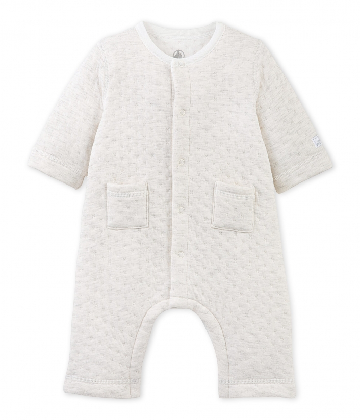 Комбінезон з відкритими ніжками для хлопчика, виготовлений з подвійної тканини. Оснащений застібкою на кнопки та двома кишенями. Матеріал: 75% бавовна, 25% поліестер.