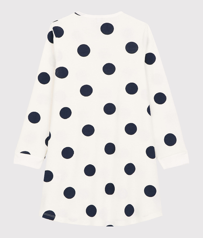 Нічна сорочка прикрашена принтом у великий горошок. Сертифікат OEKO-TEX® STANDARD 100, CQ 746/3, IFTH. Органічна бавовна. Склад: 100% бавовна