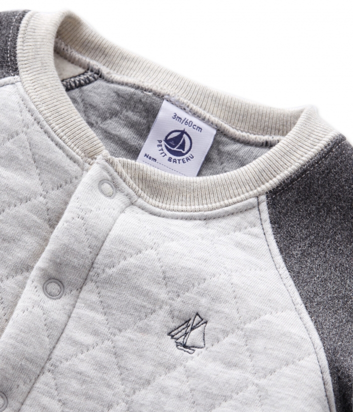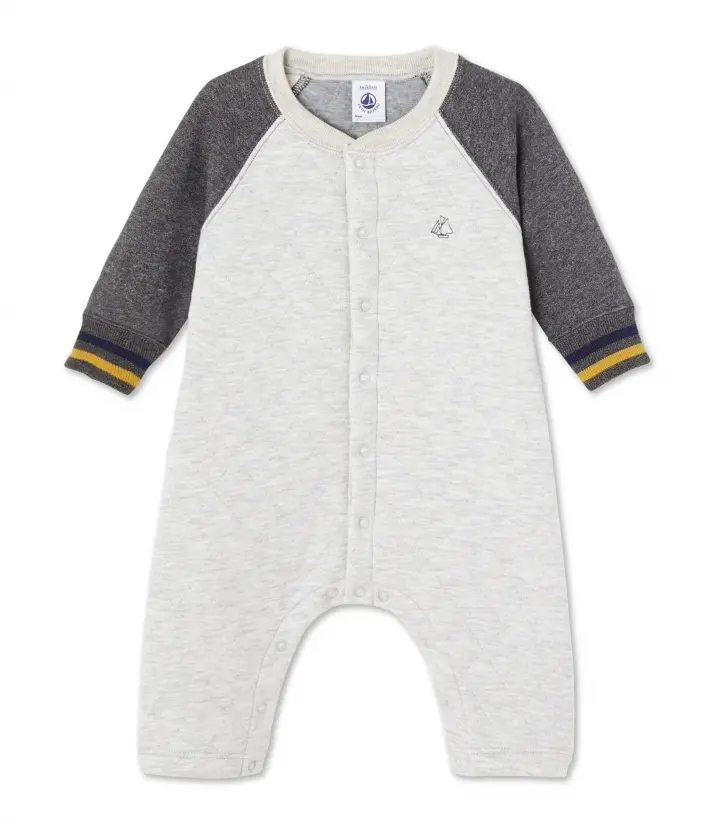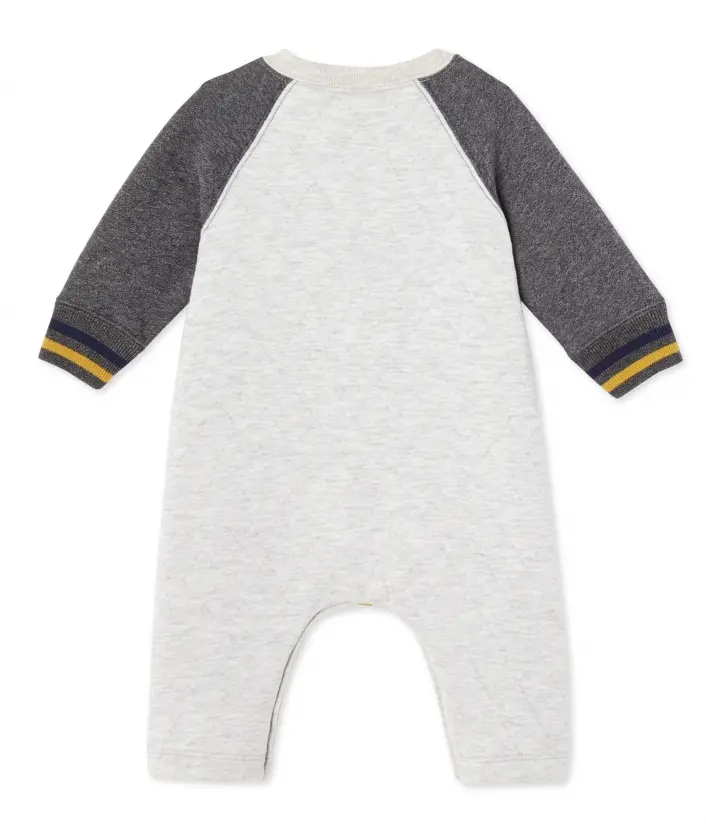 Стильний комбінезон для хлопчика, виготовлений із комбінованої тканини. Комбінезон має зручну систему застібок для швидкого та комфортного переодягання дитини. Матеріал: 75% бавовна, 25% поліестер / 100% бавовна.