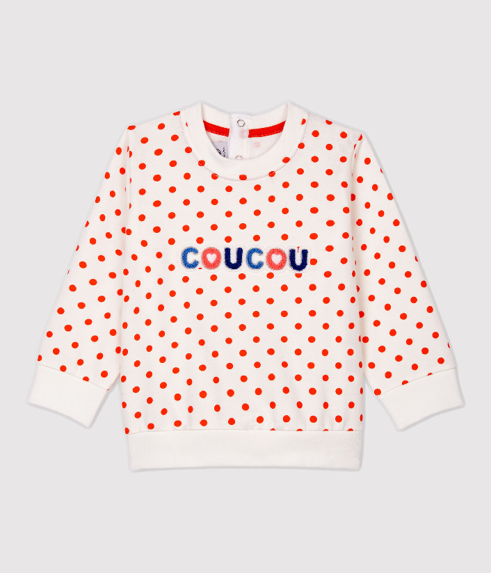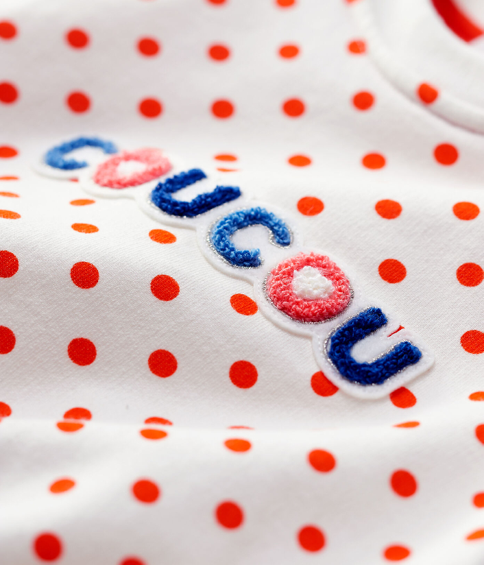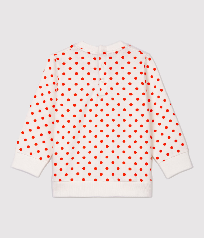 Світшот прикрашений яскравим горошком. Застібка на кнопочки ззаду. Склад: 100% бавовна