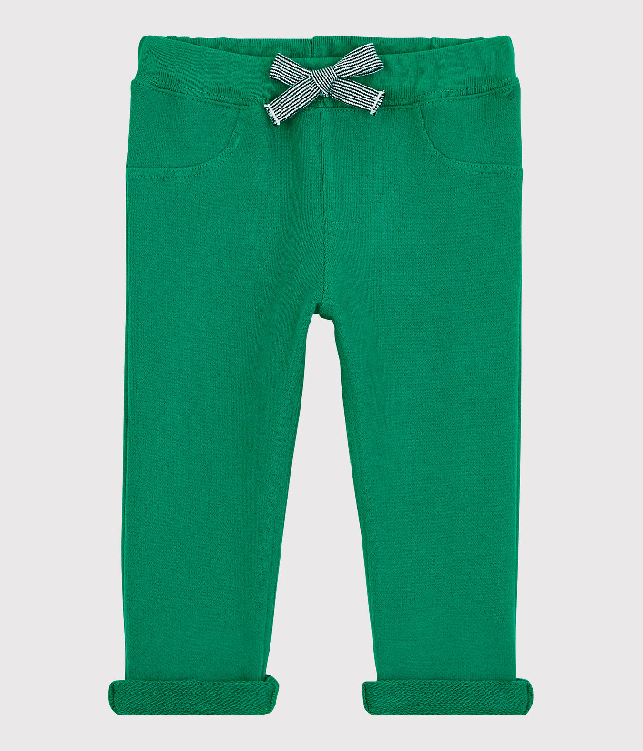 М'які та комфортні брючки з підкатаними штанинами прикрашені нашивкою логотипу бренду Petit Bateau ззаду на кишені, трикотажним бантиком та імітованими кишенями спереду. Еластичний пояс. Склад: 100% бавовна
