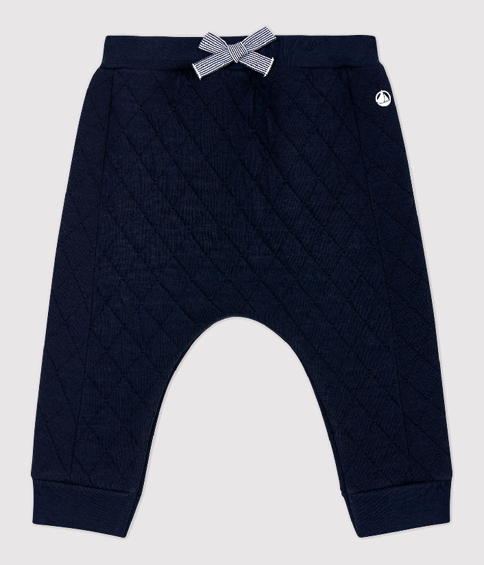 Брюки прикрашені вишивкою вітрильника Petit Bateau. Еластичний пояс дозволяє легко перевдягатися, а милий бантик у смужку чудово підкреслює ці стильні штанці. Склад: 75% бавовна, 25% поліестер