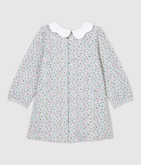 Флісова сукня з квітковим принтом. Білий комір додає особливого шарму виробу. Застібка на кнопочки ззаду. Одягайте легінси або колготки під настрій та образ. Склад: 100% бавовна