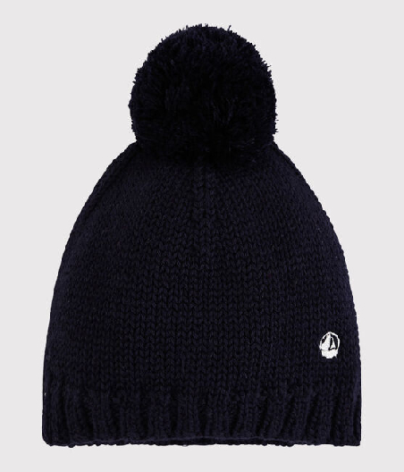 Тепла шапка з помпоном та нашивкою емблеми Petit Bateau. Склад: 50% акрил, 50% бавовна / 100% поліестер