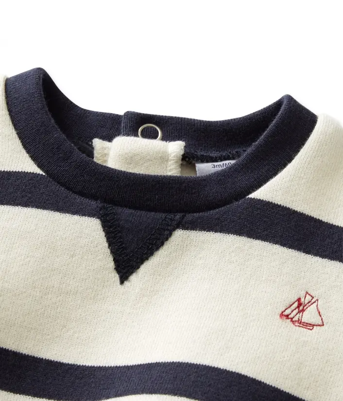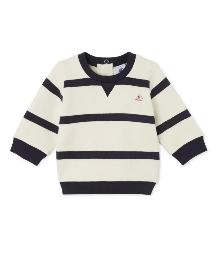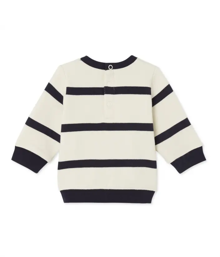 Світшот для хлопчика, виготовлений з теплої бавовняної тканини у смужку. Світшот оздоблений застібкою на кнопки на спині. Матеріал: 100% бавовна.