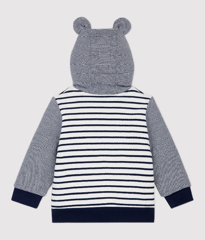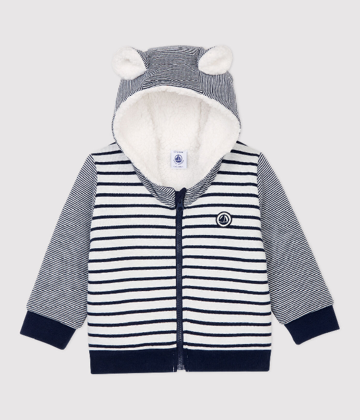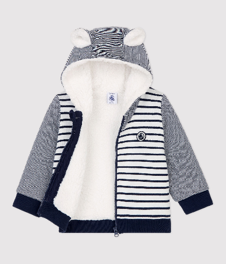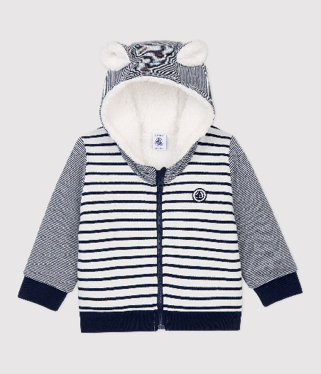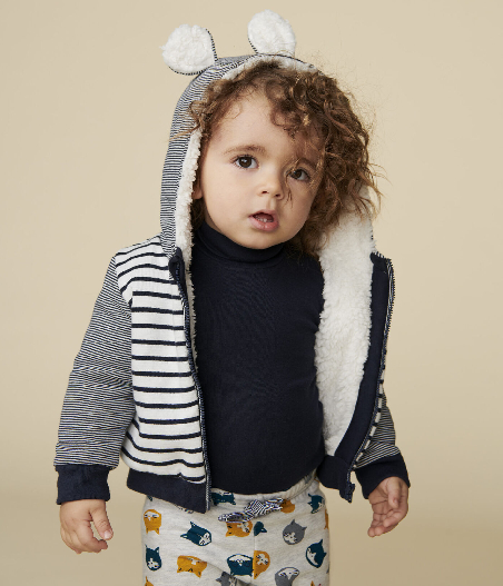 Куртка утеплена штучним хутром. Капюшон прикрашений вушками. Застібка-блискавка. Склад: 97% бавовна, 3% поліамід / 100% поліестер / 100% бавовна