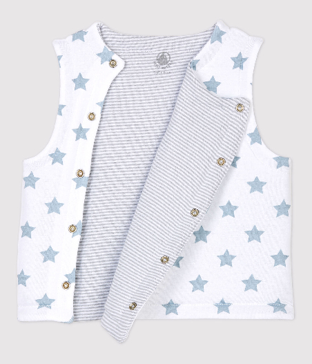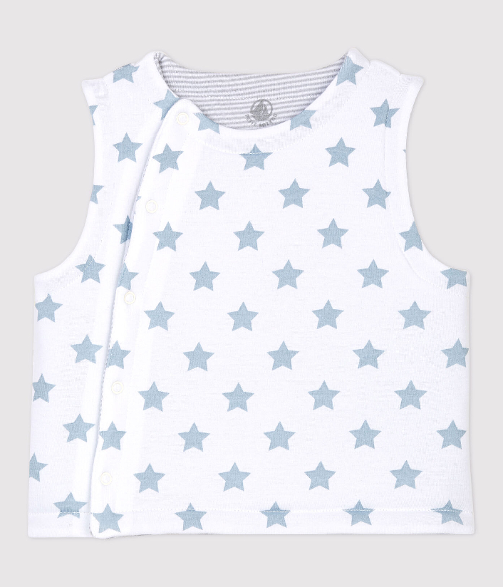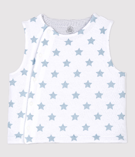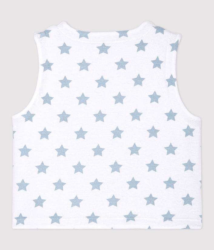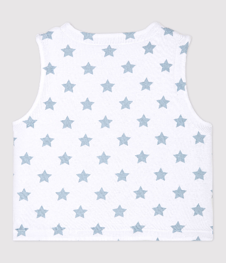 Кардиган без рукавів з застібкою на кнопочки. Виріб прикрашений зірочками. Склад: 100% бавовна / 100% поліестер