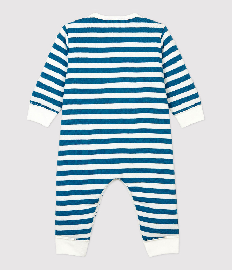 Комбінезон з відкритими ніжками. Застібка на кнопочки. Виріб прикрашений смужками. Склад: 100% бавовна / 100% поліестер