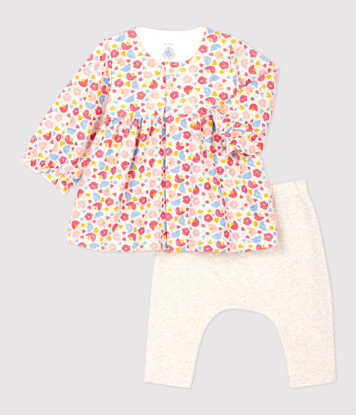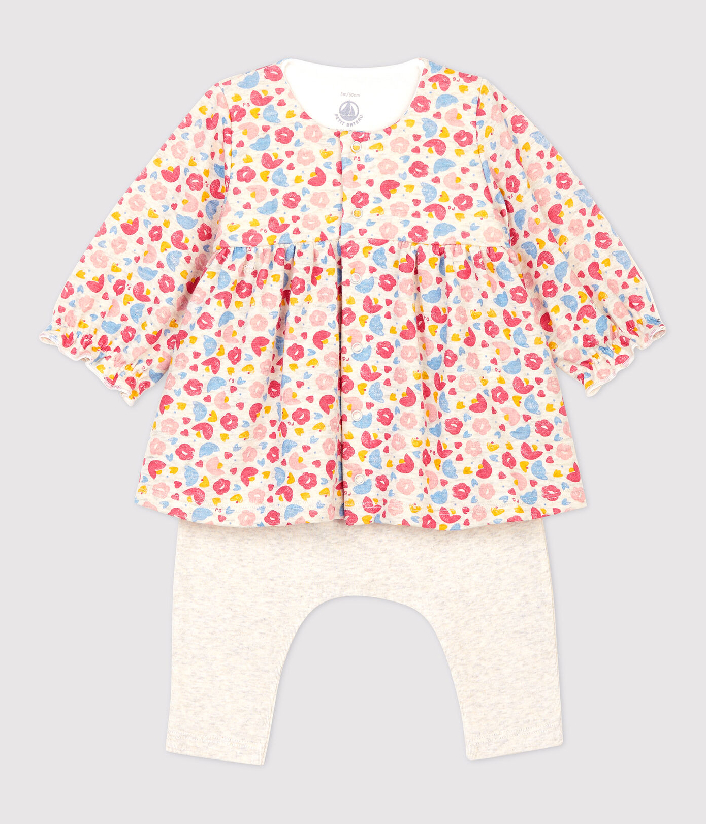 Тепла сукня прикрашена квітковим принтом, легінси однотонні. Сертифікат STANDARD 100 OEKO-TEX®. Органічна бавовна. Склад: 85% бавовна, 9% вовна, 6% поліамід / 100% бавовна