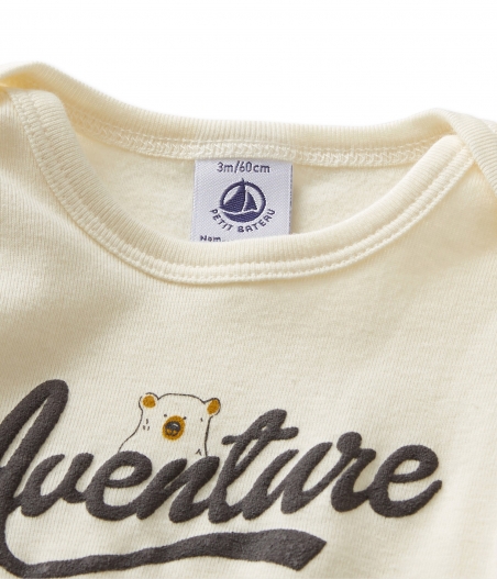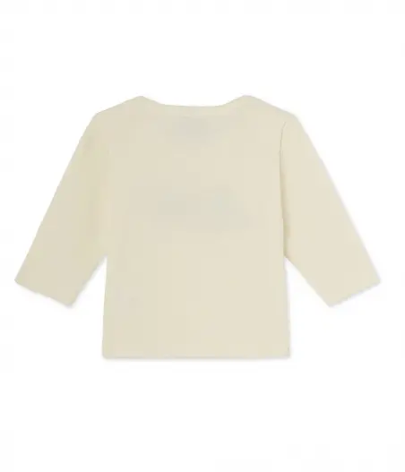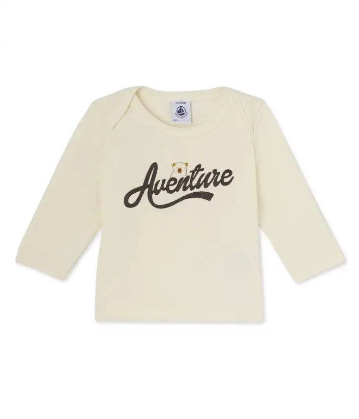 Футболка з довгими рукавами для хлопчика, прикрашена малюнком і надписом на грудях. Мамам дуже сподобається "американський" виріз, який дозволить переодягати малюка швидко та зручно. Матеріал: 100% бавовна.