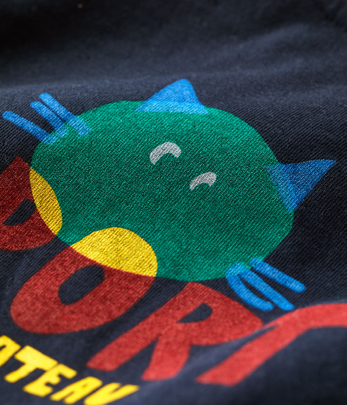 Флісовий світшот з різнокольоровою окантовкою та яскравим принтом. Склад: 100% бавовна