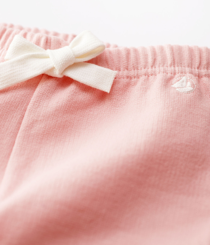 М'які та комфортні брючки з підкатаними штанинами прикрашені нашивкою логотипу бренду Petit Bateau та трикотажним бантиком. Еластичний пояс. Склад: 100% бавовна