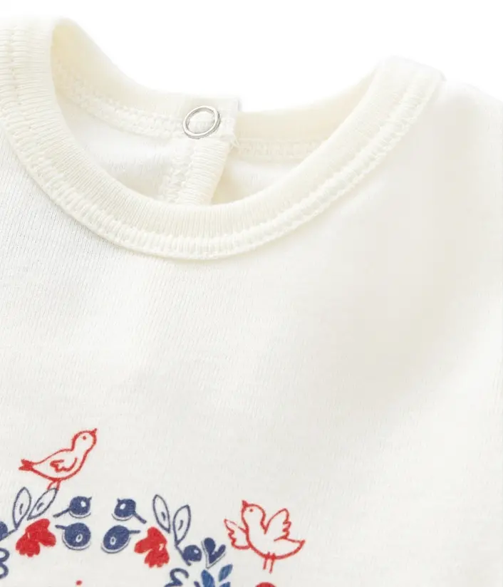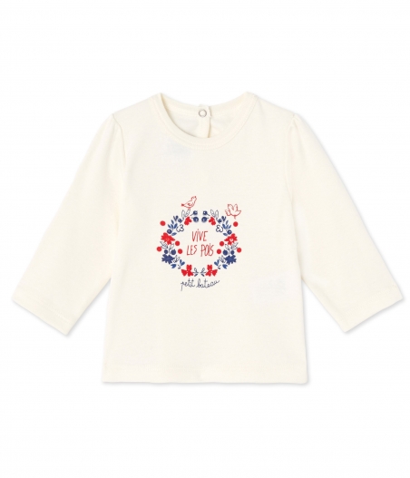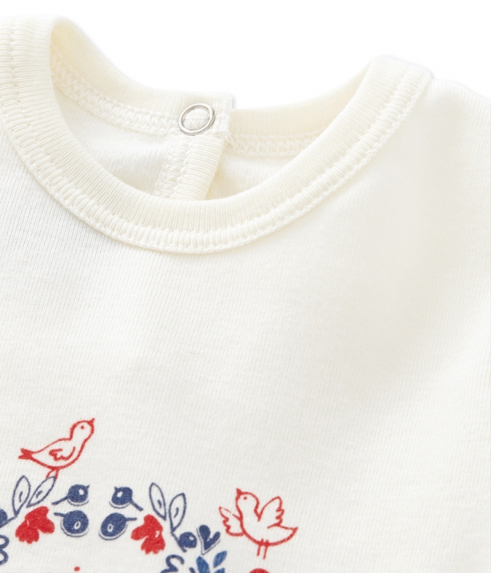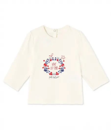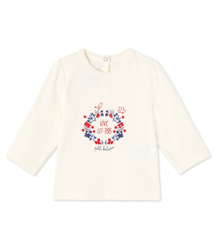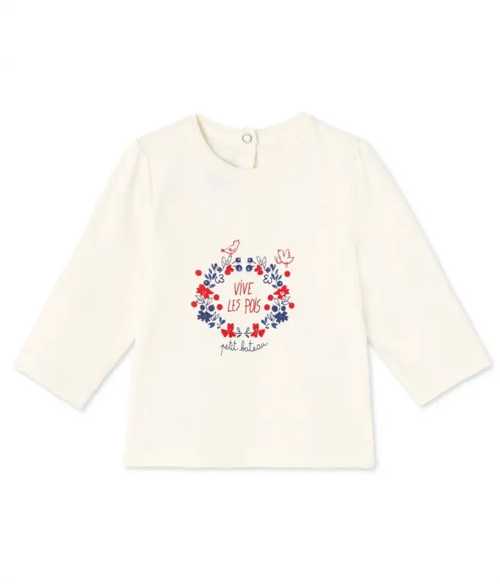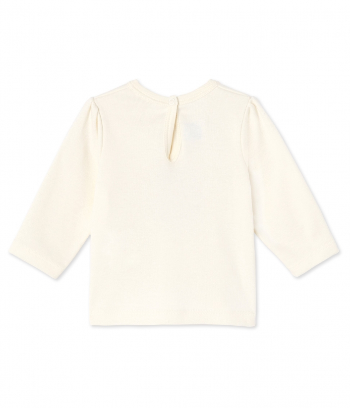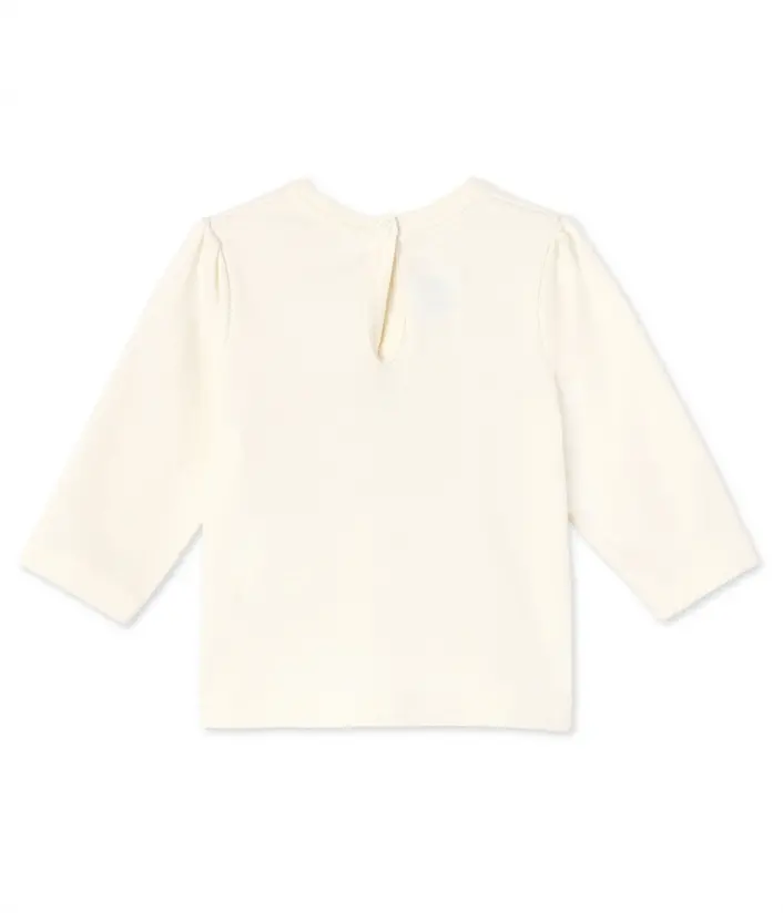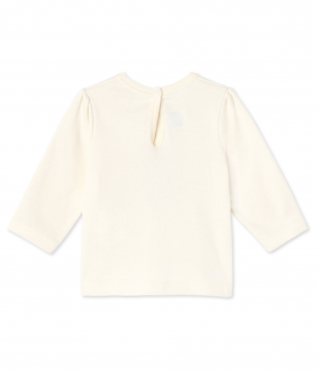 Футболка з довгими рукавами для дівчинки, виготовлена з надзвичайно комфортної та теплої тканини. Футболка прикрашена гарним малюнком на грудях та оздоблена застібкою на спинці. Матеріал: 100% бавовна.