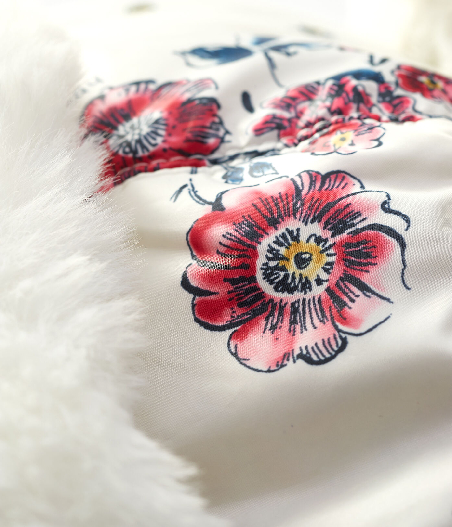 Водонепроницаемая шапочка украшена цветочками и милыми помпонами. Утеплена искусственным мехом. Состав: 100% полиэстер