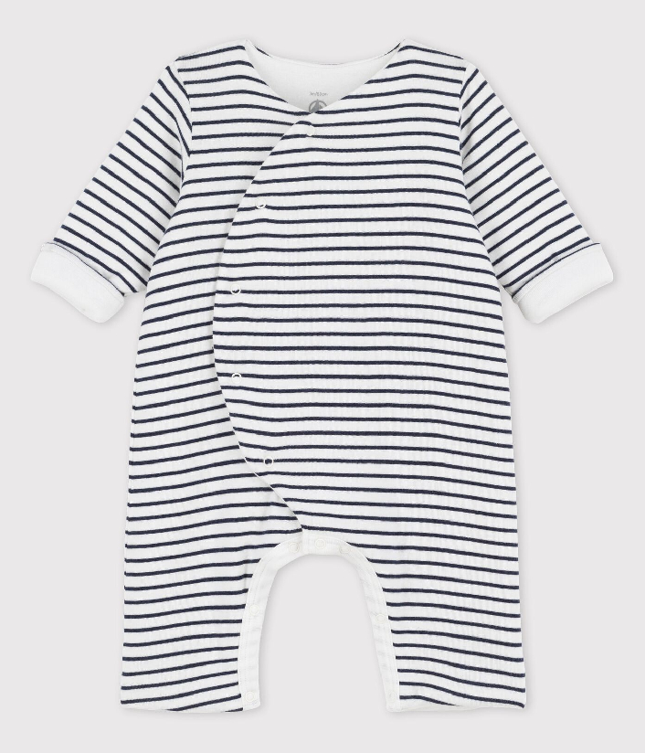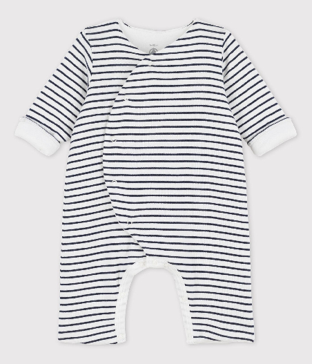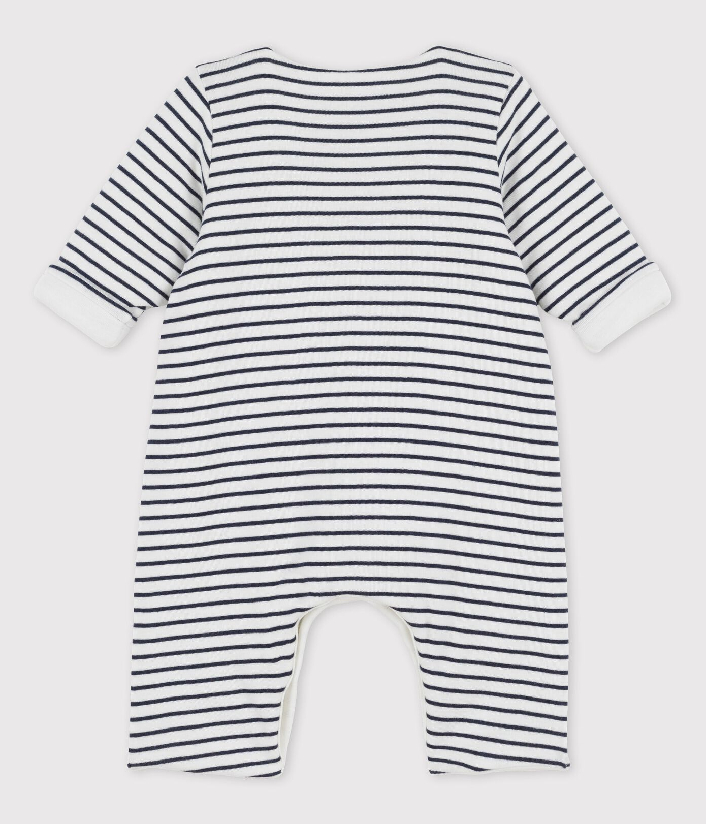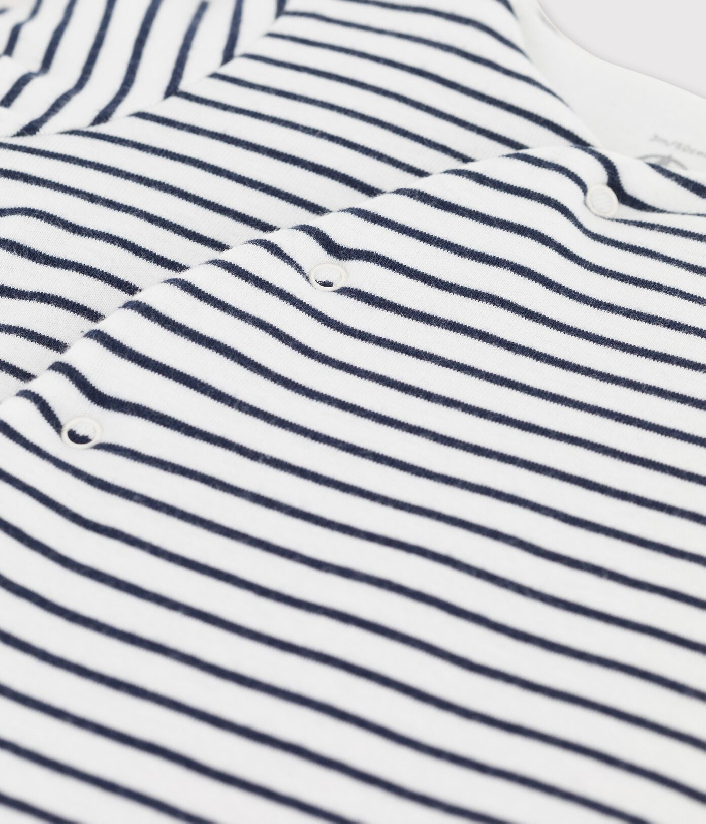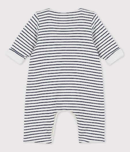 Комбинезон с открытыми ножками. Застёжка на кнопочки. Изделие украшено полосками. Сертификат OEKO-TEX STANDARD 100, CQ 746/3, IFTH. Органический хлопок. Состав: 100% хлопок/100% полиамид