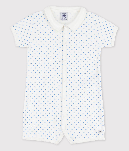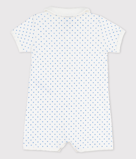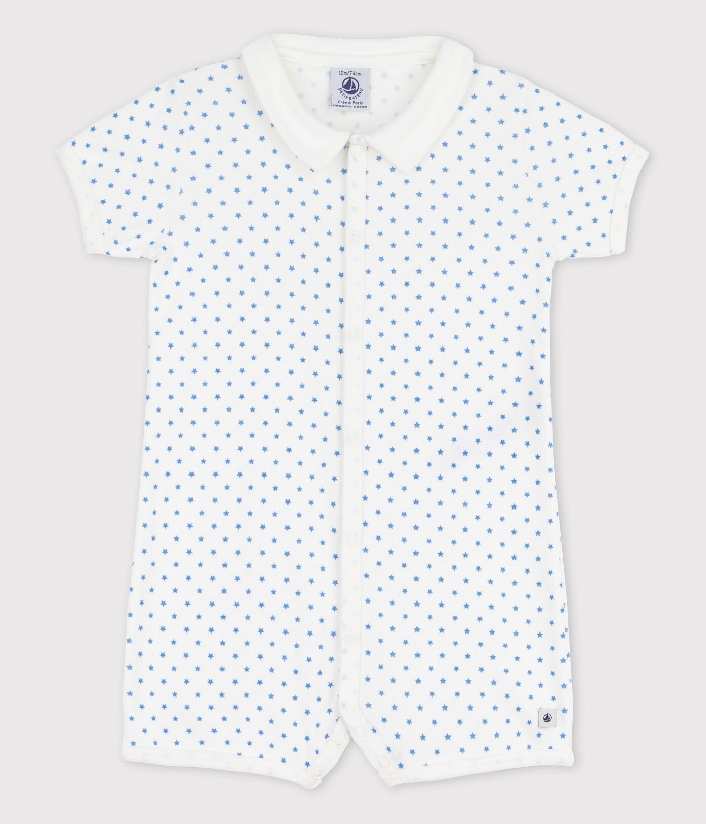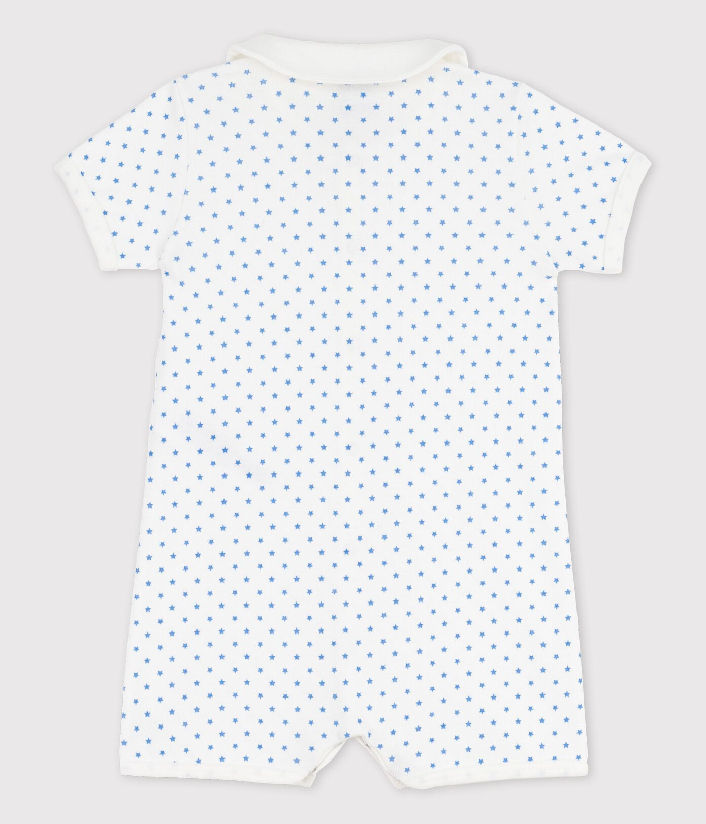 Комбінезон прикрашений зірочками та білим коміром. Сертифікат OEKO-TEX® STANDARD 100, CQ 746/3, IFTH. Склад: 100% бавовна