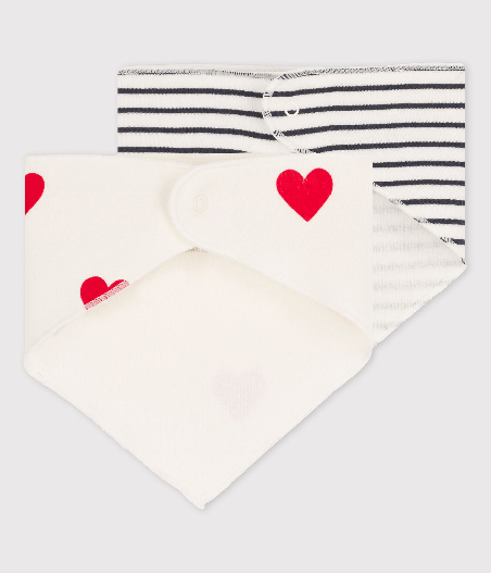 У комплекті двоє нагрудників для немовлят. Застібка на кнопочку. Органічна бавовна Petit Bateau відмічена етикеткою OEKO-TEX®. Склад: 100% бавовна