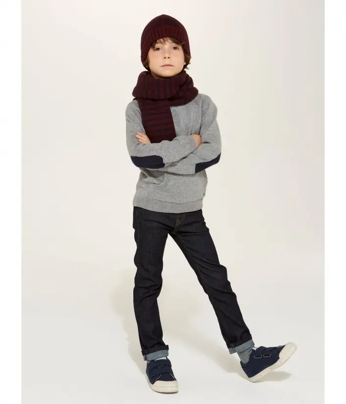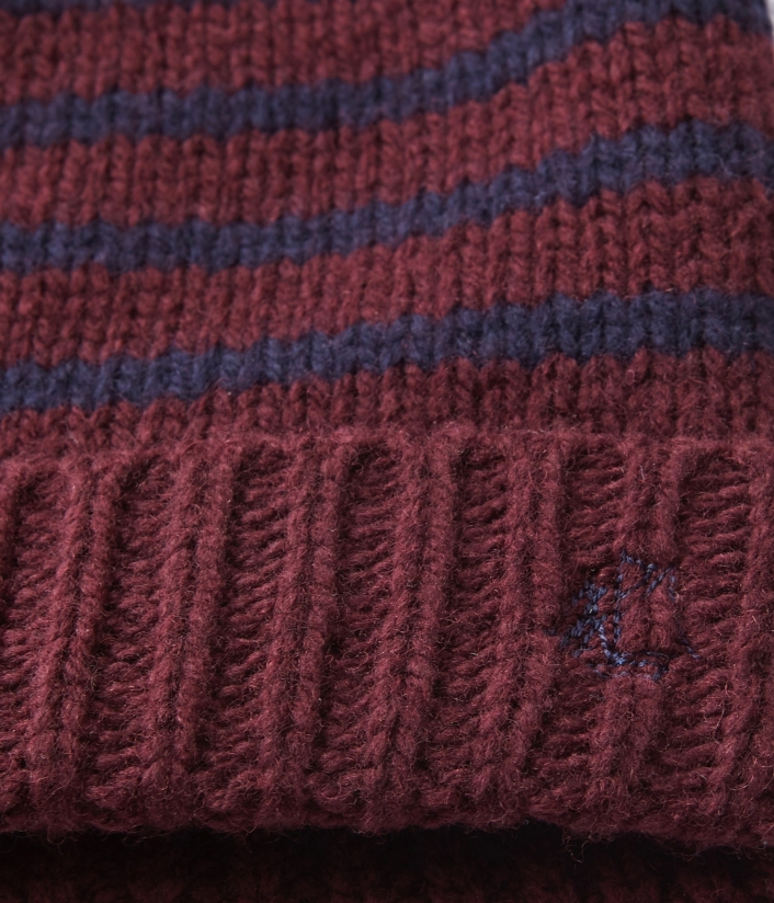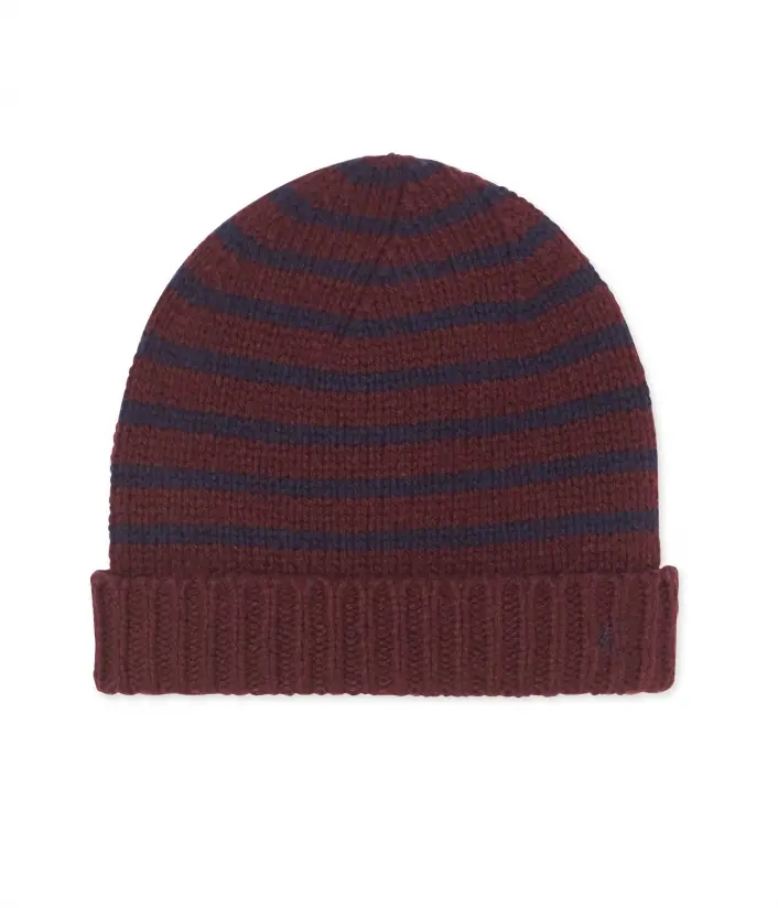 Вязаная шапка в полоску для мальчика. Эта теплая шапка - необходимый аксессуар в зимнем гардеробе мальчика. Материал: 62% шерсть, 38% полиамид.